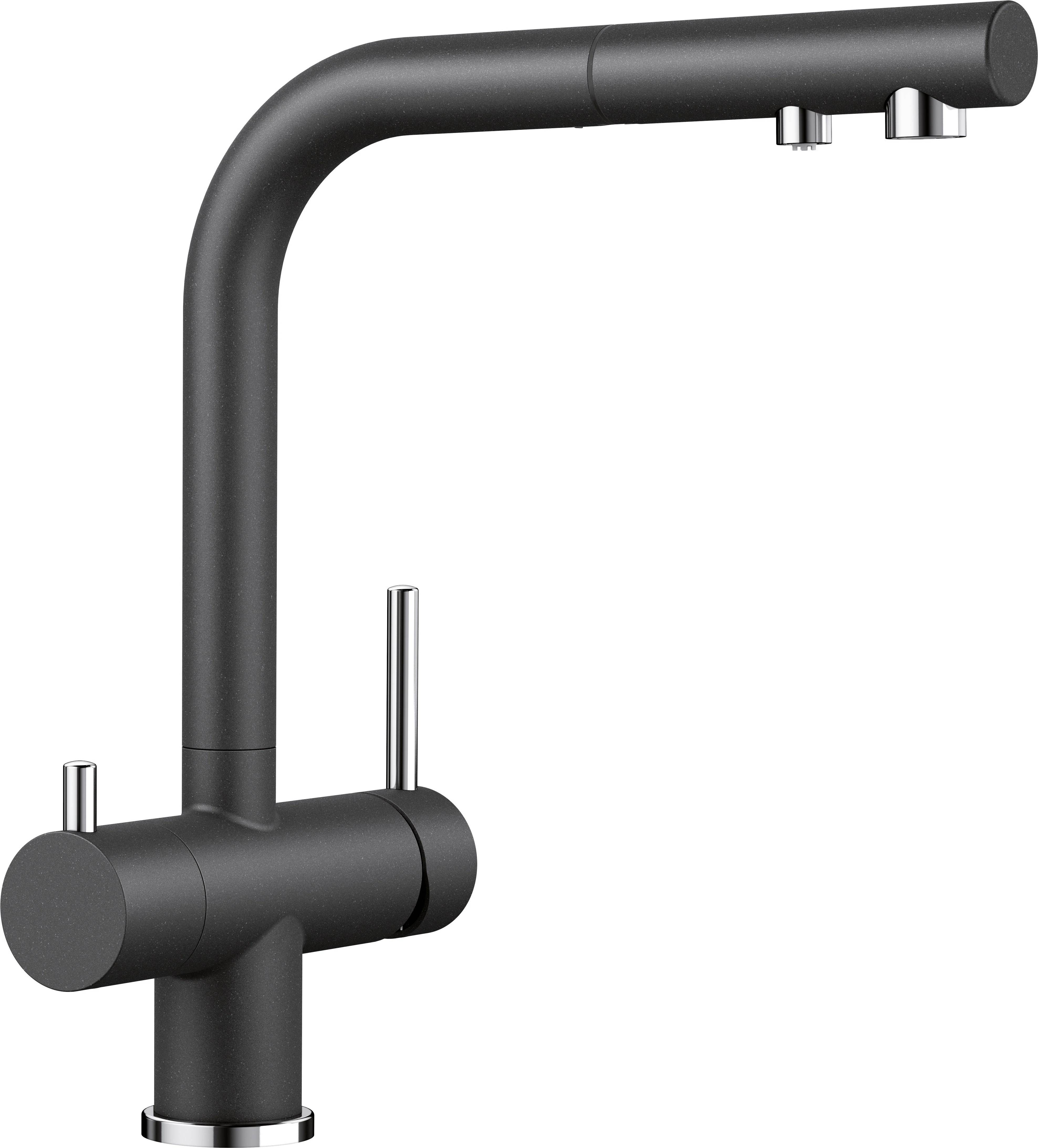 • Kényelmes 3 az 1-ben csaptelep: szűrt és szűretlen víz a kihúzható kifolyón keresztül
