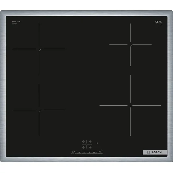 Indukciós üvegkerámia főzőlap - Serie4 - 60cm - Nemesacél keret - TouchSelect - Timer - ReStart - QuickStart - 4,6kW max. teljesítmény - kizárólag 1 fázisra köthető
