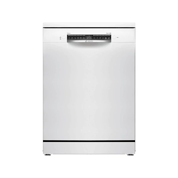Szabadonálló mosogatógép - Serie4 - Home Connect - Fehér - 14 teríték - Energiaosztály:D - 6 program - 5 opció - Nagyméretű LED kijelző - Nyomógombos vezérlés - Kondenzációs,hőcserélővel szárítás - VarioFlex kosárrendszer - VarioDrawer - 9 liter/ciklus - 46 dB(A) re 1 pW - Programok: Eco 50°C, Auto 45-65°C, Intenzív 70°C, 1 h 65°C, Silence 50°C, Favourite/Előöblítés - Opciók: Időzítés (24h), Extra szárítás, Féltöltet, SpeedPerfect +, MachineCare, További opciók a HC alkalmazásban - Kijelzés: Só és öblítőszer- hiány, Maradék-idő - Felszereltség: AquaStop, EcoSilence Drive , AquaSensor, Töltöttség szenzor, Háromszoros szűrő rendszer, Regeneráló elektronika, Üvegvédelmi rendszer, DosageAssist, Elektronikus nyomógombzár - Kosárrendszer: Váltókar technika, Állítható felső kosár (Rackmatic), Lehajtható elemek az alsó kosárban (4db), Lehajtható elemek a felső kosárban (2db), Lehajtható pohártartó az alsó kosárban (Nem), Lehajtható pohártartó a felső kosárban (2db), Kosármegállító ütközők, Alacsony súrlódású kerekek az alsó kosárban, Alacsony súrlódású kihúzórendszer a felső kosárban - Méretek (mm, ma x szé x mé):845x600x600 - Állítható lábak(mm): max. 20