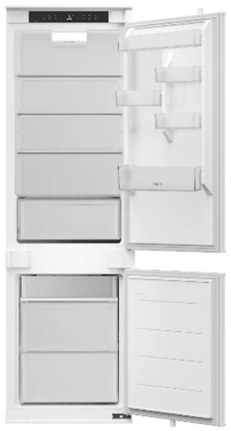 Beépíthető kombinált hűtőszekrény Total No Frost rendszerrel – 194 cm magas, nettó űrtartalom: 206 L hűtő, 64 L fagyasztó, energiatakarékos belső LED világítás, Metal Cooling, csendes inverteres kompresszor, friss zóna 26 l űrtartalommal, csúszó sínrendszer ajtórögzítéshez, energiaosztály: D, 4 állítható + 1 fix biztonsági üvegpolc, zajszint: 37 dB(A), méretek: 193.7 × 54 × 55 cm