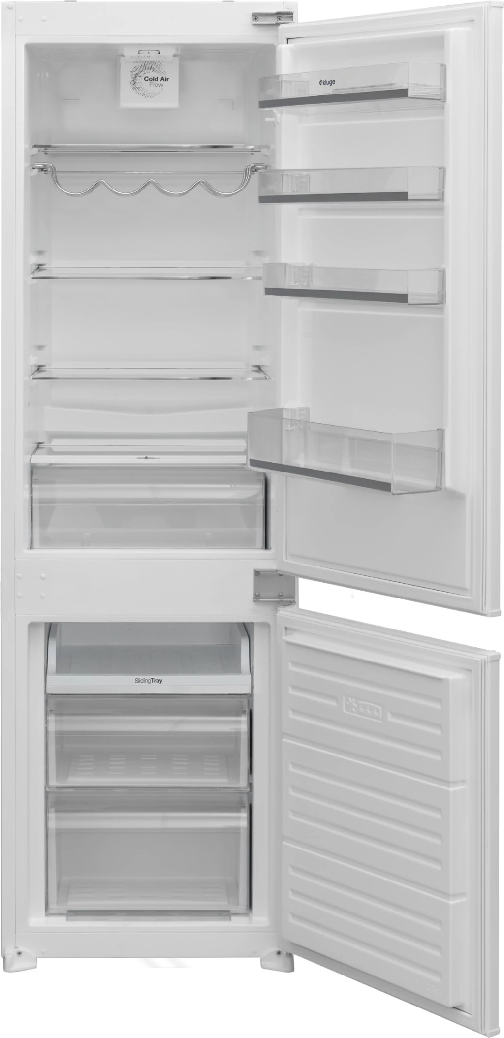 Beépíthető No Frost kombinált hűtőszekrény; energiaosztály E; teljes bruttó térfogat kb. 251 l; teljes nettó térfogat 230 l; a No Frost rendszernek köszönhetően nem képződik jég a fagyasztóban, így nem szükséges kézi leolvasztás; fehér kivitel; belső LED világítás; klímaosztály ST/N; tápkábel hossza 2,0 m; éves energiafogyasztás 218 kWh; áramszünet esetén az önálló üzemidő 12 óra; zajszint 41 dB; méretek (Ma×Sz×Mé): 177 × 54 × 54,5 cm; tömeg 54 kg.