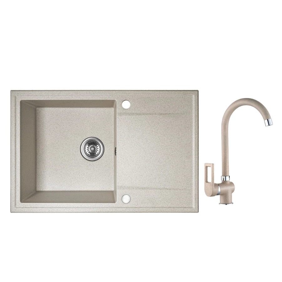 RIO MINI SZETT minicsepptálcás gránit bézs mosogató szifonnal, csappal 56x44x17,5 cm