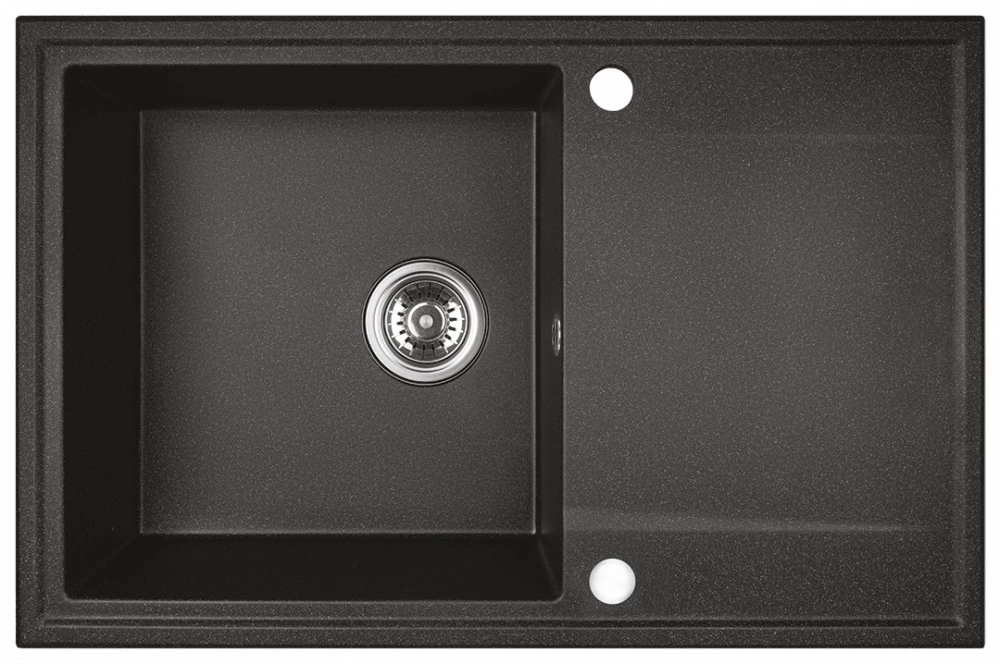 Laveo RAB MINI szemcsés fekete csepptálcás mosogató helytakarékos szifonnal, csaplyuktakaró dugóval