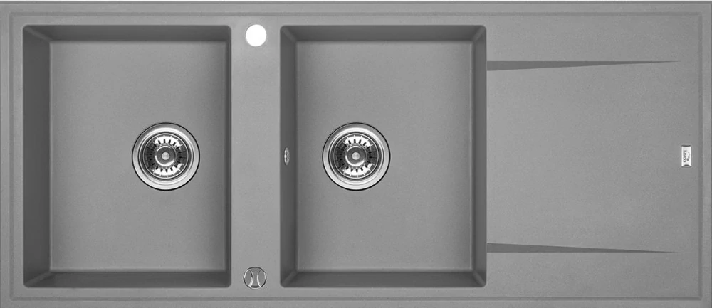 Laveo MEGALO kétmedence csepptálcás szürke mosogató dugókiemelős helytakarékos szifonnal
