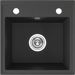 Laveo RINA egymedencés szemcsés fekete mosogató csaplyukkal, automata dugókiemelős, helytakarékos szifonnal