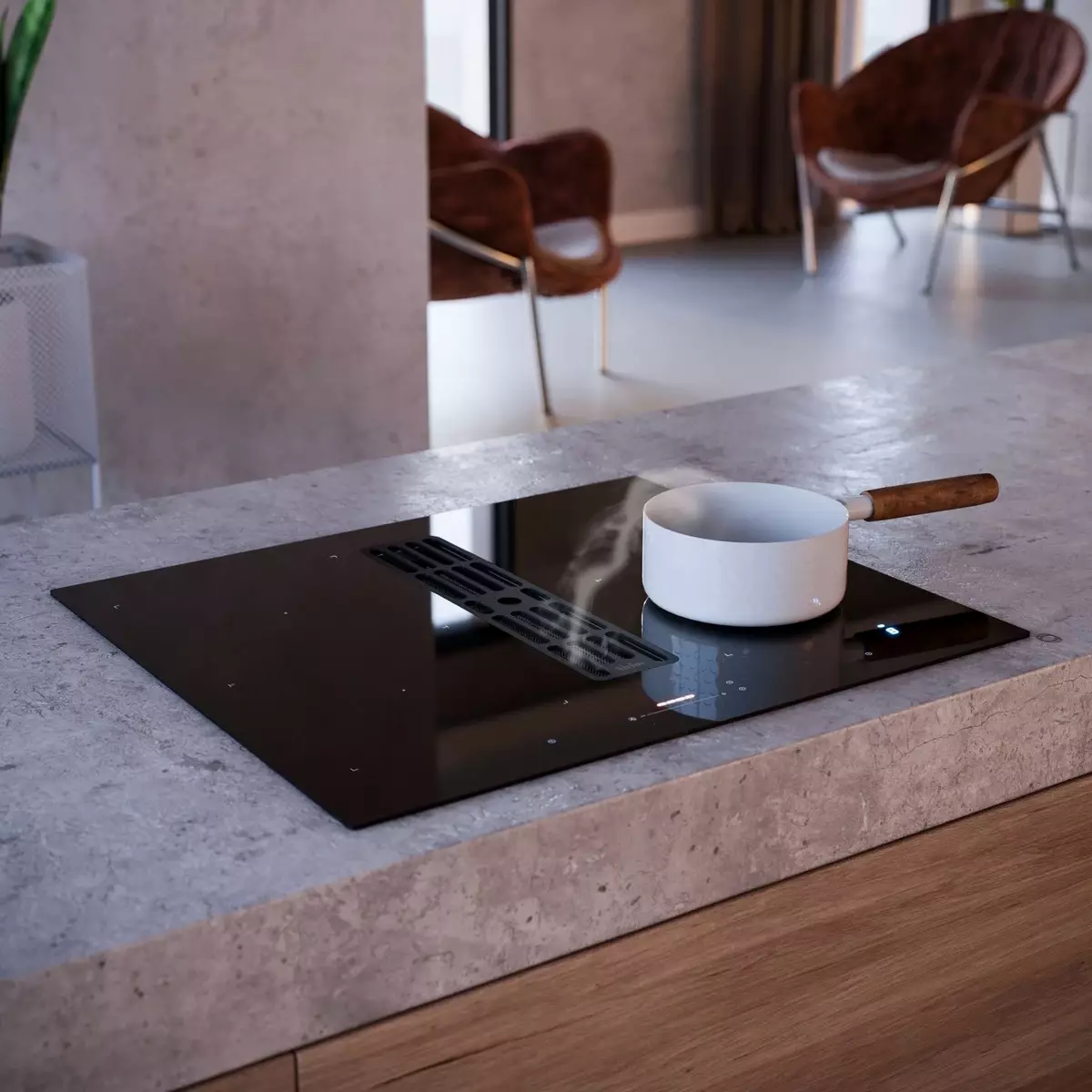 A SIRIUS S-DDH6 beépített elszívója nem áll le a főzés befejeztével: az utószellőztetési funkció automatikusan működésbe lép, és még a főzés után is aktívan eltávolítja a gőzt, szagokat és pára maradványait a konyhából. Így a levegő mindig tiszta és friss marad, a konyha pedig hosszabb ideig kellemes légkörű.