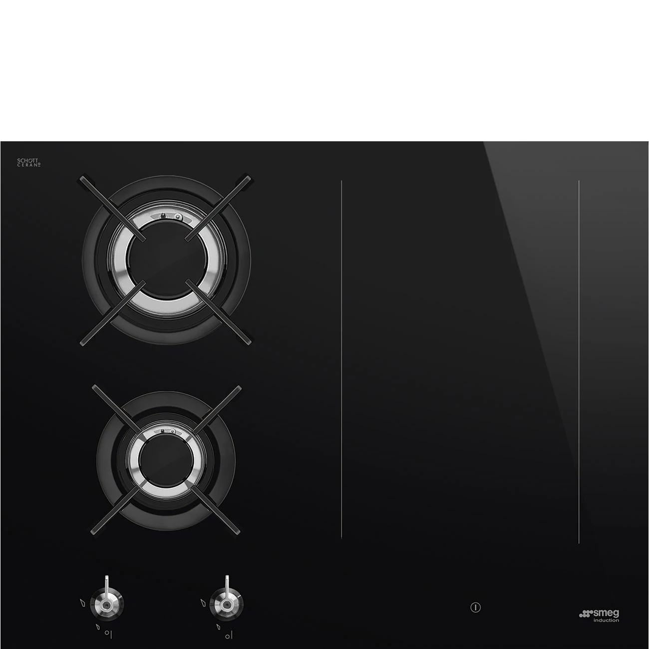 SMEG KOMBINÁLT FŐZŐLAP,Classic,65 cm,munkalapsz.,2 égő,2 Eclipse boosterzóna,slider,multizone,fekete üvegkerámia alap