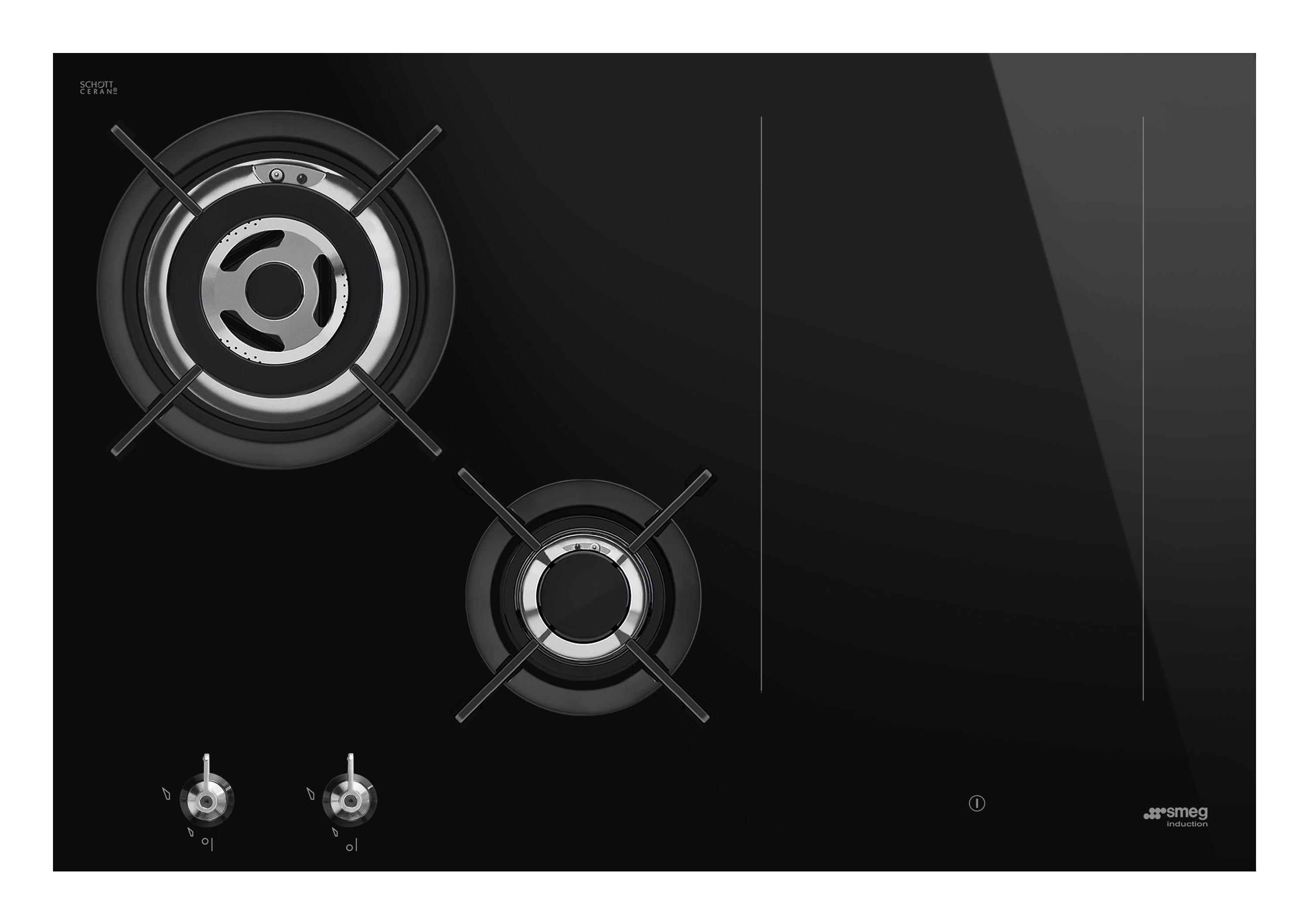 SMEG KOMBINÁLT FŐZŐLAP,Classic,75cm,munkalapsz.,1+3,3 kW WOK,2 Eclipse dupla booster,slider,multizone,fekete üvegkerámia