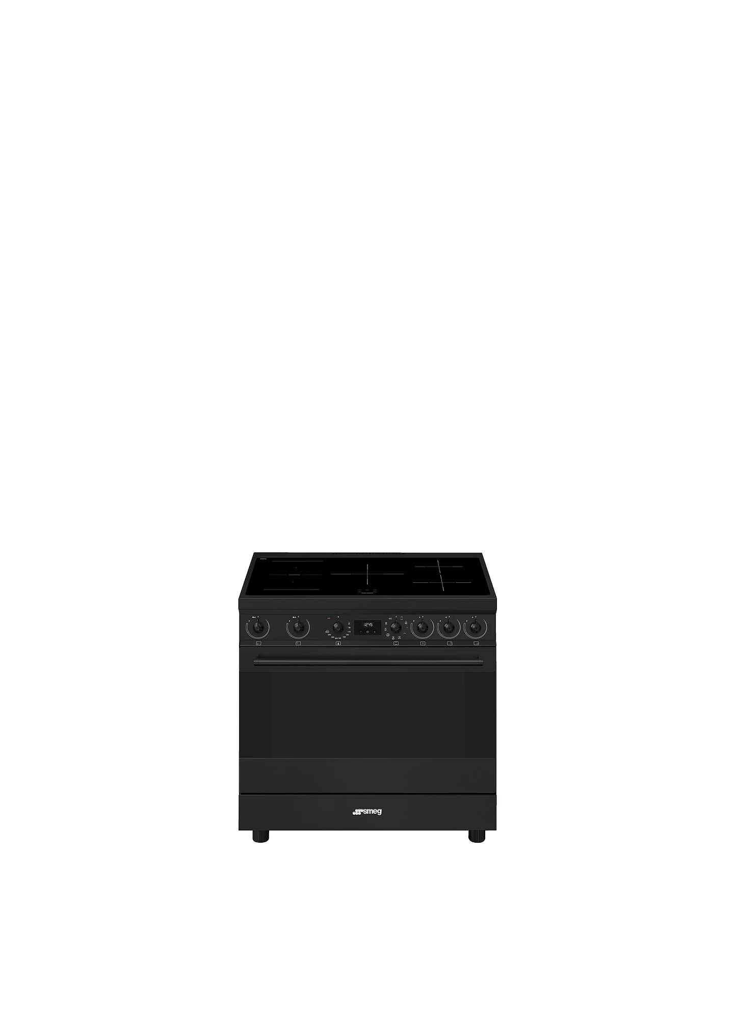 SMEG SZABADONÁLLÓ TŰZHELY, Classica design, 90 cm, 1 sütőtér, indukciós főzőlap, fekete gombok és fogantyúk, matt fekete